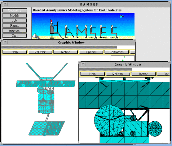 Das Programm RAMSES ("Rarified Aerodynamics Modeling System for Earth Satellites") wurde entwickelt, um die aerodynamischen Eigenschaften von Satelliten beliebiger Geometrie im Orbit und während der frühen Wiedereintrittsphase berechnen zu können. Eine vollständige Berechnung der Strömung um den Satelliten erforderte die Lösung der strömungsmechanischen Grundgleichungen (Boltzmann, Navier-Stokes) einschließlich chemischer Reaktionen. Dies ist selbst für aerodynamisch geformte Körper nur mit hohem Rechenaufwand möglich. Die aerodynamischen Eigenschaften, die zur Berechnung der Wiedereintrittsbahn nötig sind, lassen sich jedoch mit guter Genauigkeit durch semi-empirische Näherungsverfahren gewinnen. Solche Verfahren kommen in RAMSES zur Anwendung.
